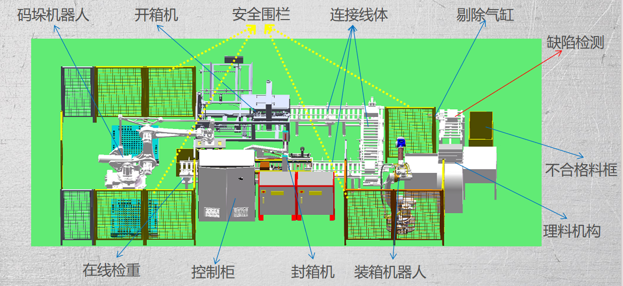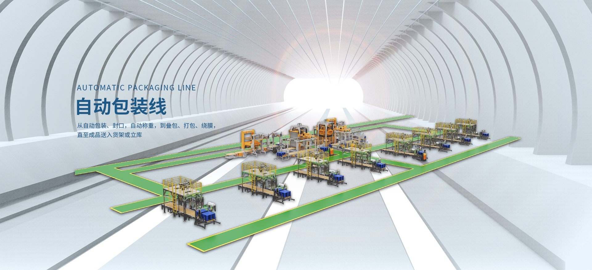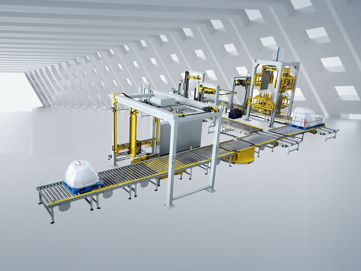 一、自動包裝線。從自動包裝、封口,自動稱重,到疊包、打包、繞膜,直至成品送入貨架或立庫;